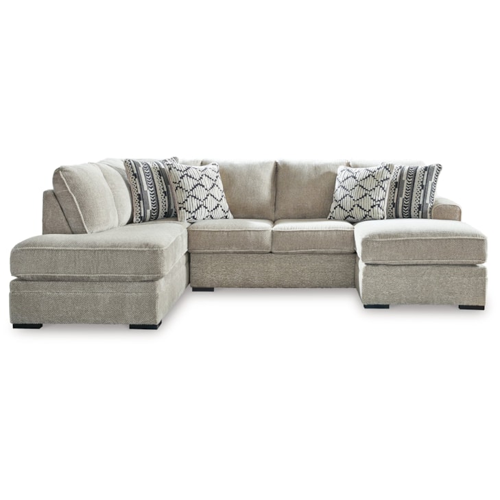 Includes 2 pieces: left-arm facing corner chaise and right-arm facing sofa chaise
