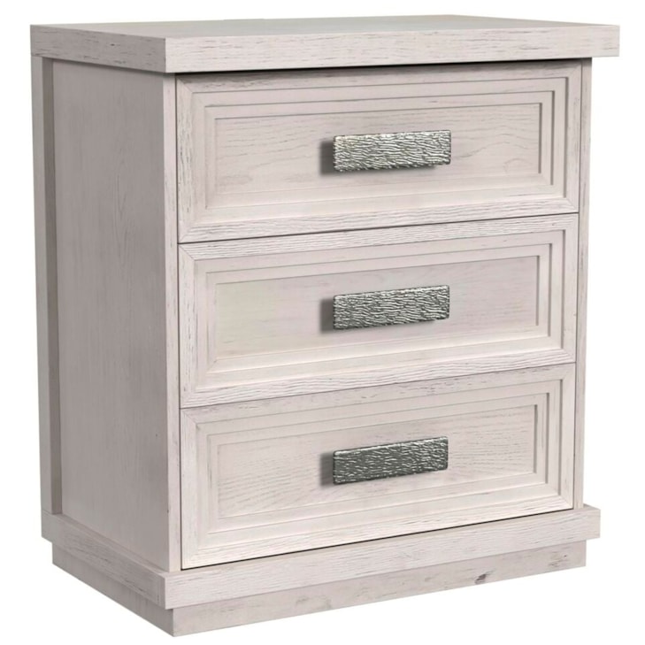 Create a haven of relaxation with the 3-Drawer Nightstand. The antique white finish radiates warmth and charm, creating an inviting atmosphere that complements any décor style. The drawer fronts feature an elegant paneled design, adding depth and visual interest. All drawers are adorned with distinctive metal pulls, carefully crafted with a textured finish to add a touch of rustic appeal. For modern convenience, the nightstand includes a USB charging station, allowing you to keep your devices charged and within reach, making this case good a perfect blend of style and functionality. Embrace this beautiful piece from the bedroom collection and make every day feel like a retreat.