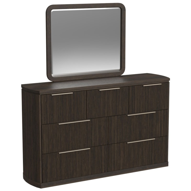 This contemporary dresser and mirror set is the perfect addition to any bedroom, offering a sleek and modern design that exudes sophistication. The dark brown finish and copper colored metal pulls create a striking contrast that adds a touch of elegance to the overall aesthetic.The dresser features seven spacious drawers, each equipped with smooth ball bearing glides, allowing for effortless opening and closing. The drawers are constructed using skillful dovetailing, ensuring durability and stability. Additionally, the drawers are lined with fabric, providing a soft and gentle surface for storing delicate items.The set includes a beveled mirror that adds depth and visual interest to the room. The mirror’s dimensions are 42″W x 1″D x 36″H, making it the perfect size for getting ready in the morning. The dresser itself measures 67″W x 20″D x 37″H, providing ample storage space for clothing and personal items.Please note that the product color may vary slightly from the images due to lighting conditions. Also, this product requires assembly, so be sure to follow the instructions carefully to ensure a successful setup.With its contemporary design and functional features, this dresser and mirror set is an excellent choice for anyone looking to upgrade their bedroom furniture. The combination of dark brown finish, copper colored metal pulls, and beveled mirror edges creates a unique and stylish look that is sure to impress.