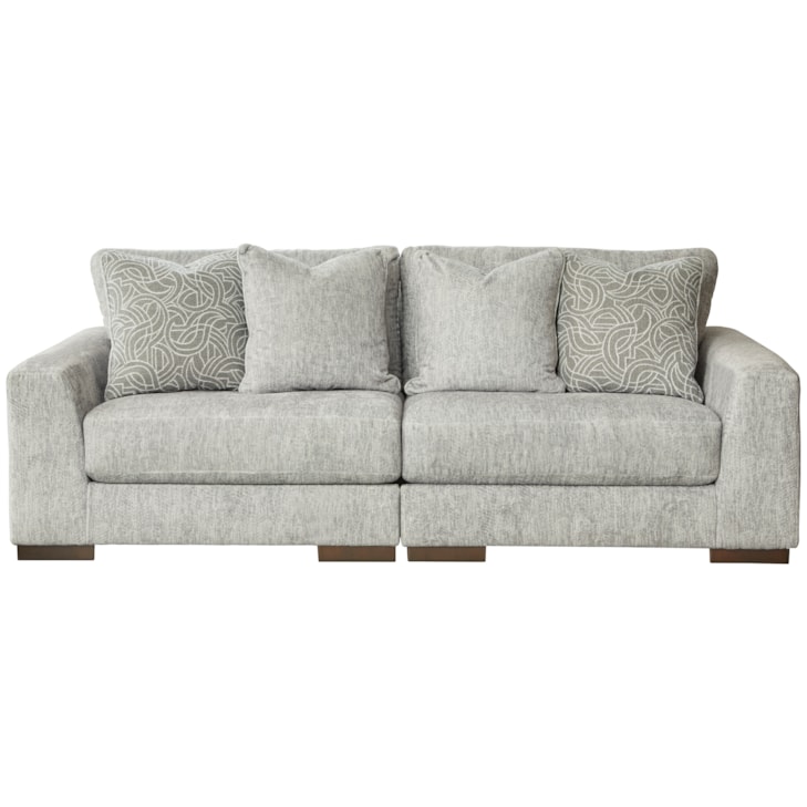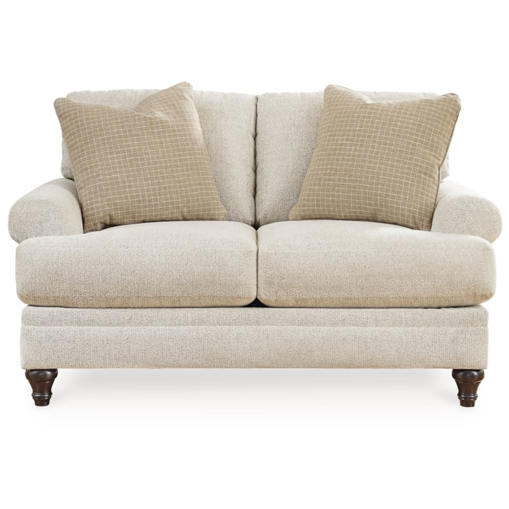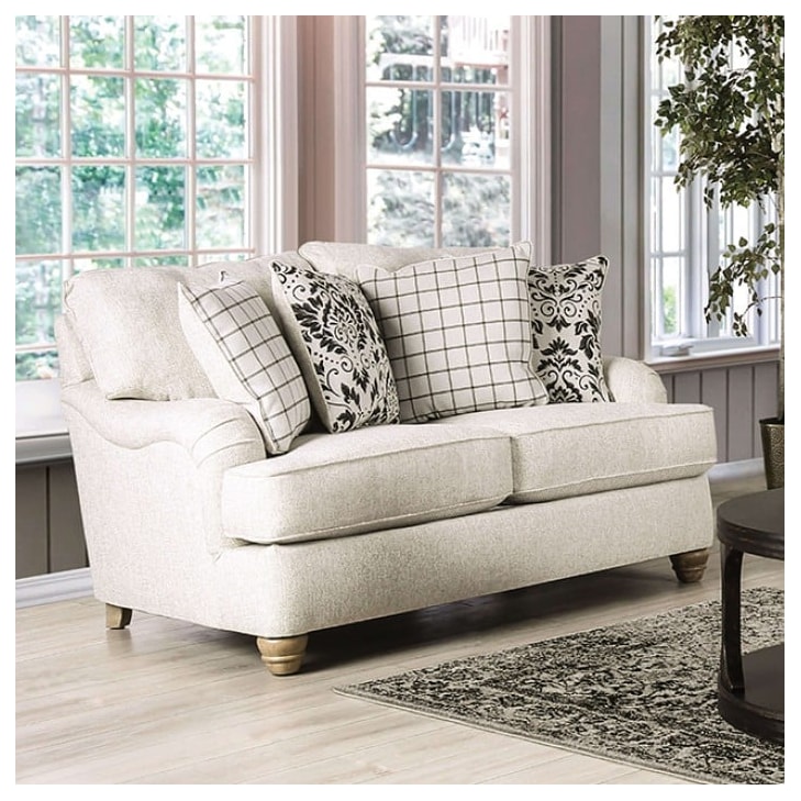 You’re in for a neat treat with this loveseat. Its comfy seats are covered in soft, textural upholstery, and the wide track arms are eager to support your quest for total relaxation. Distressed abstract toss pillows bring a fresh breath of contemporary style while accentuating the loveseat’s color.