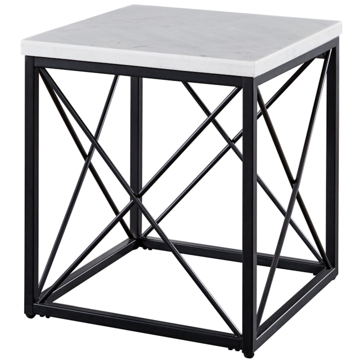 Welcome this end table into your home, and add a splash of contemporary style to your living room. With its white marble top and powder coated iron base, this piece blends two complementary materials to create an intriguing, two-toned design. Its criss-crossing table supports bring some pizzazz to its silhouette too, ensuring this end table provides your decor with unmatched personality.