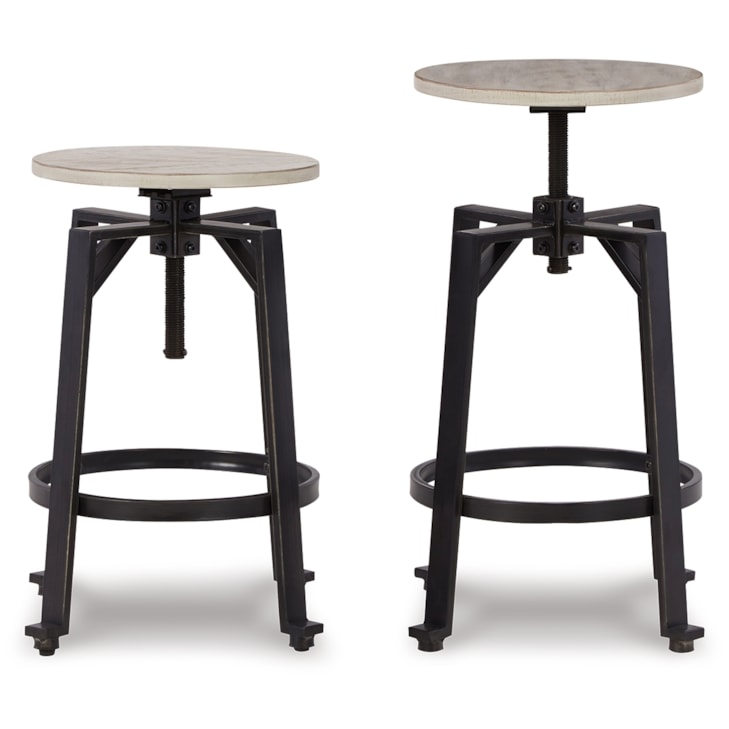 Add a rustic-yet-refined look to your home with this two-tone swivel stool. Its distressed whitewash wood seat with black metal frame conveys an inviting farmhouse style. This charmer easily moves from counter to pub height, giving you and your guests the freedom to sit comfortably while adding a casually cool industrial vibe to your table.