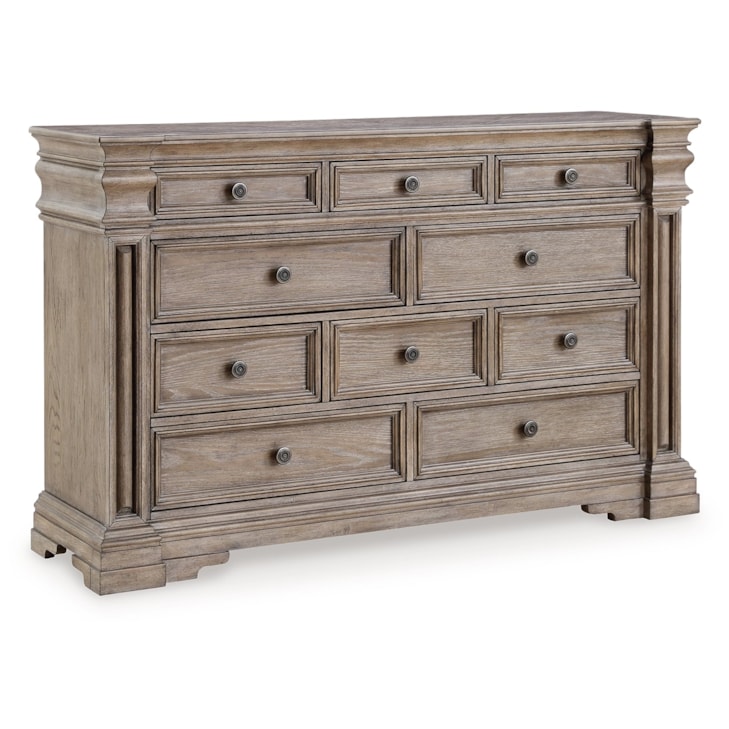 Discover something exceptional with this dresser. Its impressive silhouette offers a casual traditional aesthetic, embodied by classic-inspired columns and a relaxed grayish brown finish. Inset framed drawers of various sizes are casually cool and packed with ample storage possibilities.