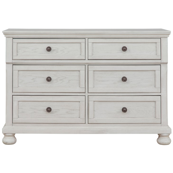 Elegant, timeless furnishings take your bedroom to the next level. Nothing does that better than this dresser. The antiqued white finish with a wonderful grain texture oozes sophistication, while dark bronze-tone knobs add an ornate touch. Felt bottoms in the upper drawers round out this tasteful piece.
