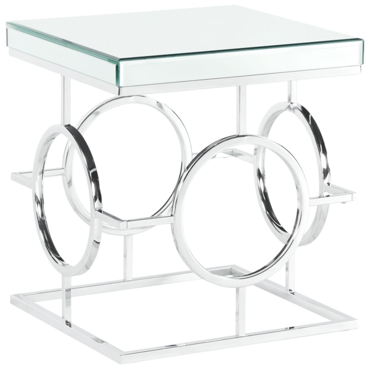 The Pearl Square Mirrored End Table will have you feeling like a queen in your living room! This accent table features a mirrored table top design, taking glam style to the next level. The table base features an intricate design, one that you will admire more and more every day. The sleek, chrome finish is going to pair well with any existing, glamorous decor you might already have. Add this ultra glam accent table to your home today for a look that will always be in style.