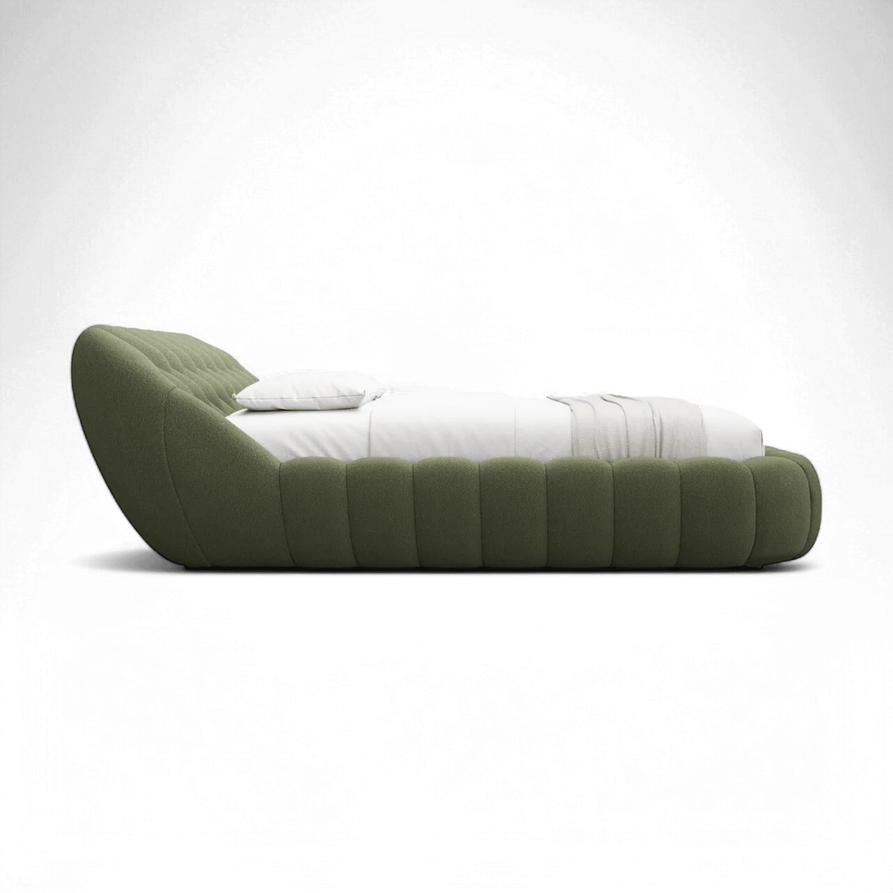 Transform your bedroom into a sanctuary of comfort and style with the Warby Bed in Green Bouclé. This luxurious bed features a unique, sculptural design with rounded edges and a beautifully tufted texture that brings a soft yet striking presence to any space. The green bouclé fabric adds an element of sophistication, creating an inviting, cloud-like retreat. Perfect for minimalist and modern interiors, the Warby Bed combines elegance with plush comfort, making it the ultimate centerpiece for your bedroom.
