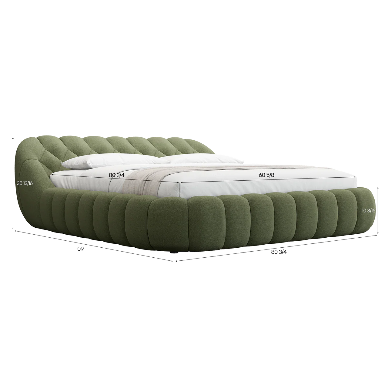 Queen: W: 80 3/4″ x D: 109″ x H: 35 13/16″