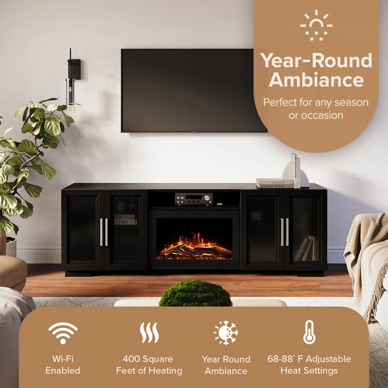 Modern Ember Channing 80-In Smart Electric Fireplace TV Stand With 26” Firebox Heater