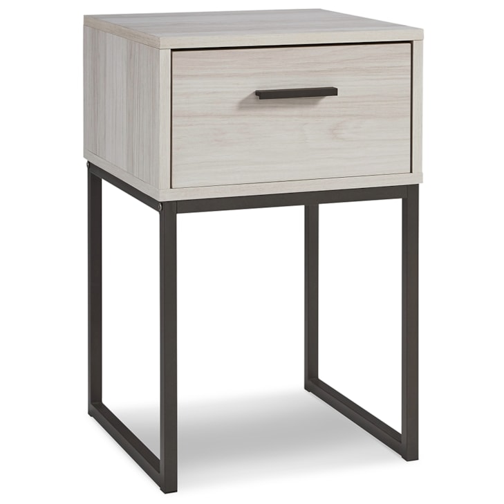 Light and bright, this nightstand is inspired by chic design. A light natural finish over replicated oak grain offers an authentic touch to this so-cool piece. It beautifully blends the hues of natural living with the edginess of your modern lifestyle.