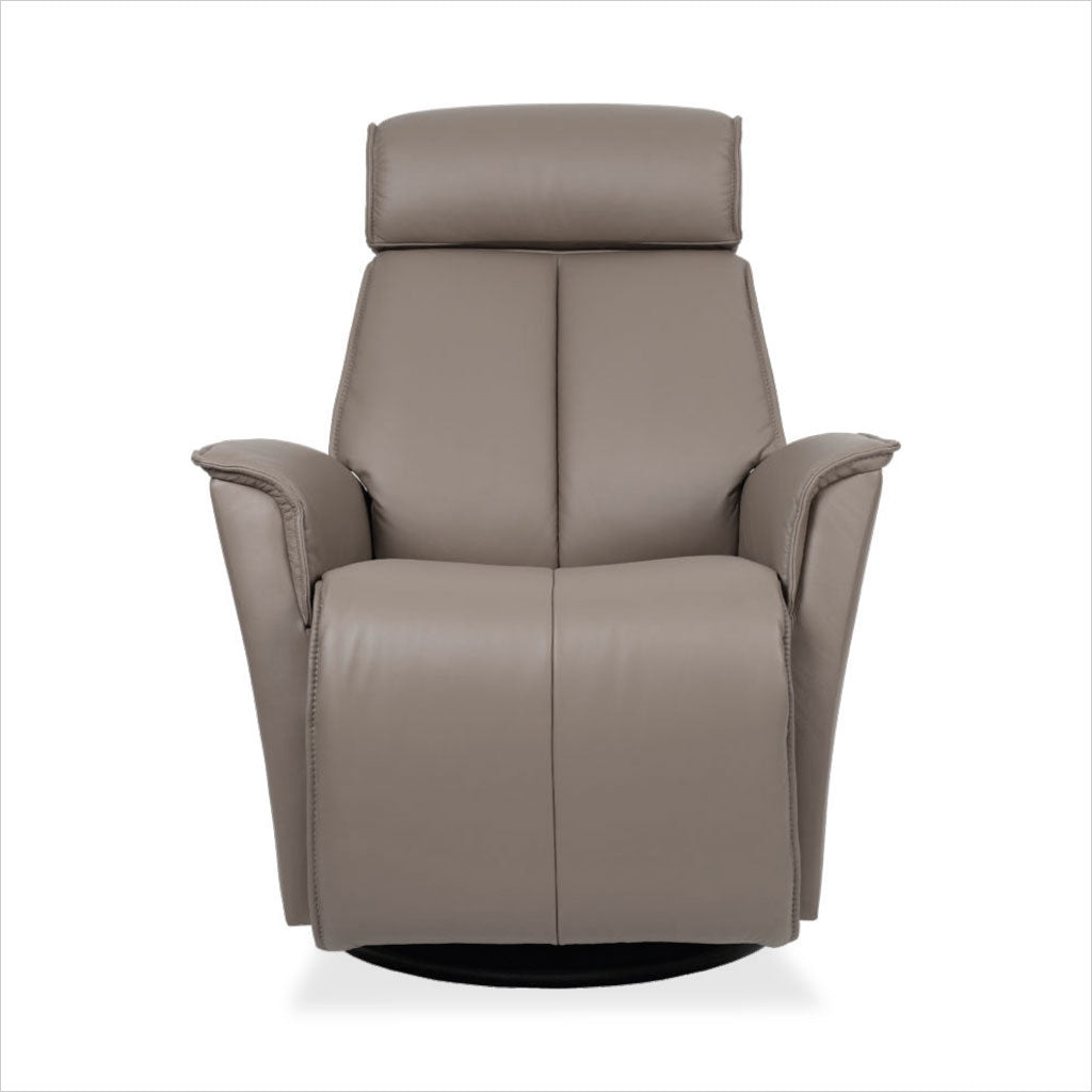 *Limited quantity available. Check with your store for availability. Description Options Dimensions The Veneto swing recliner with a height adjustable headrest as well as adjustable headrest angle, makes the seating experience ergonomic and gives your lower back correct support. The Veneto is a motorized swivel/glider/rocker recliner. We stock the Veneto recliner in the Small version – in Nougat leather. Black Base is standard on Veneto. Also available in stock in Ice leather. Available for Special Order in a number of other colors, and in a manual version small – 32.5 W x 37.25 D x 40.25 H (reclined: 62.25 D) Seat height: 19.5 inches Seat depth: 23.25 inches Seat width: 20 inches Arm height: 23 inches Arm width: 6 inches