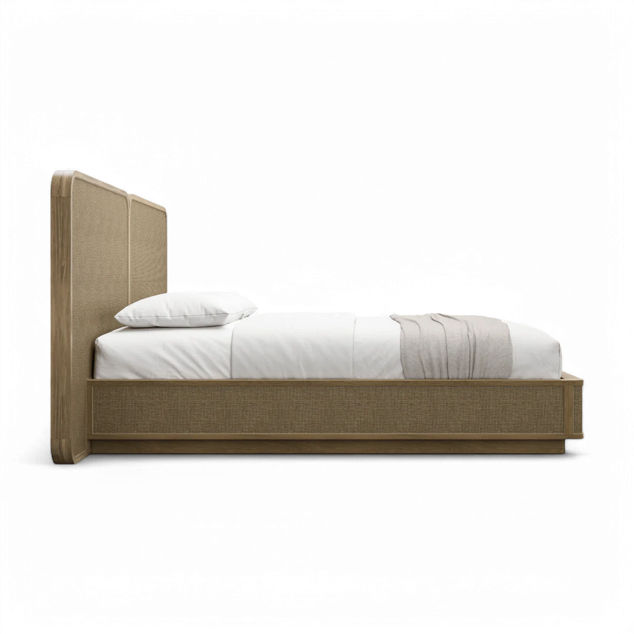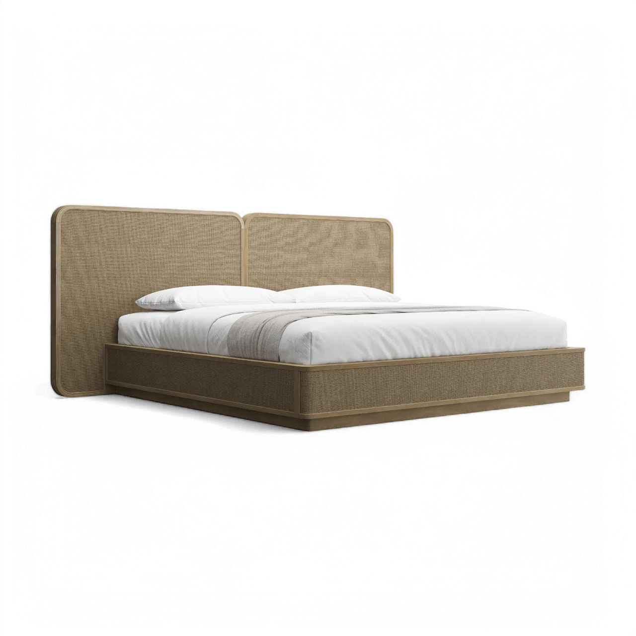 Top Finish: Greige Oak Veneer, Cane | Inner Frame Material: Rubberwood | Base Material: Rubberwood | Wood Slat Bed Foundation